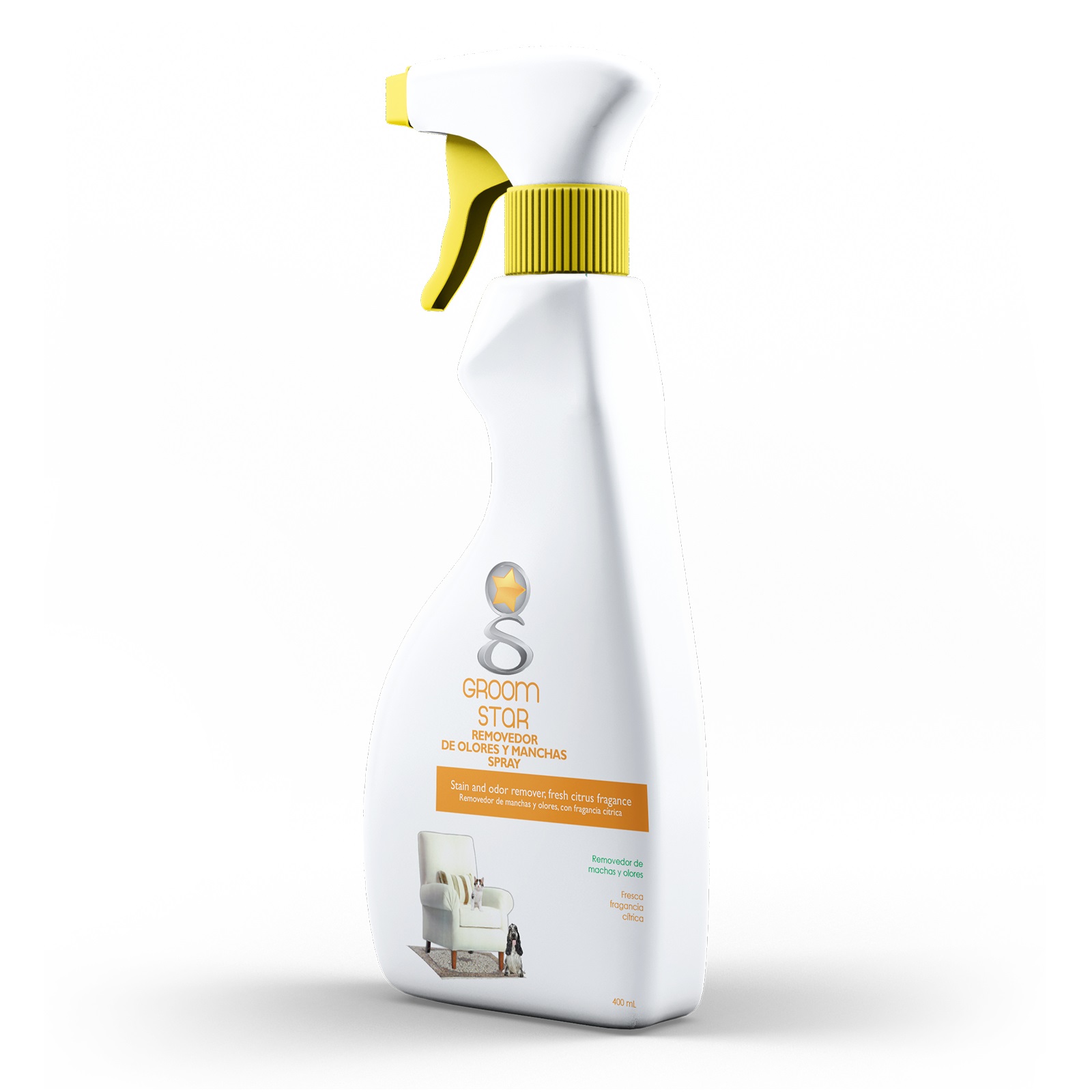 Indicaciones: Efectiva formulación que combina activos de la más alta calidad por la cual logran la completa neutralización de las moléculas orgánicas que causan el mal olor y la reducción de la concentración de las mismas en su fase de vapor. Además cuenta con un novedoso beneficio que elimina todo tipo de manchas orgánicas, ocasionadas por las mascotas como orina, saliva, vómito, comida, sangre, entre otros. Groom Star removedor de olores y manchas, está especialmente formulado para ayudar a quitar existentes y nuevas manchas, desodorizar sillones, alfombras, camas, piso, ropa, juguetes de tela o simplemente en cualquier lugar donde la mascota cause mal olor, manchas, o donde necesite higienizar. Así como también dejarle un agradable aroma a cítrico.